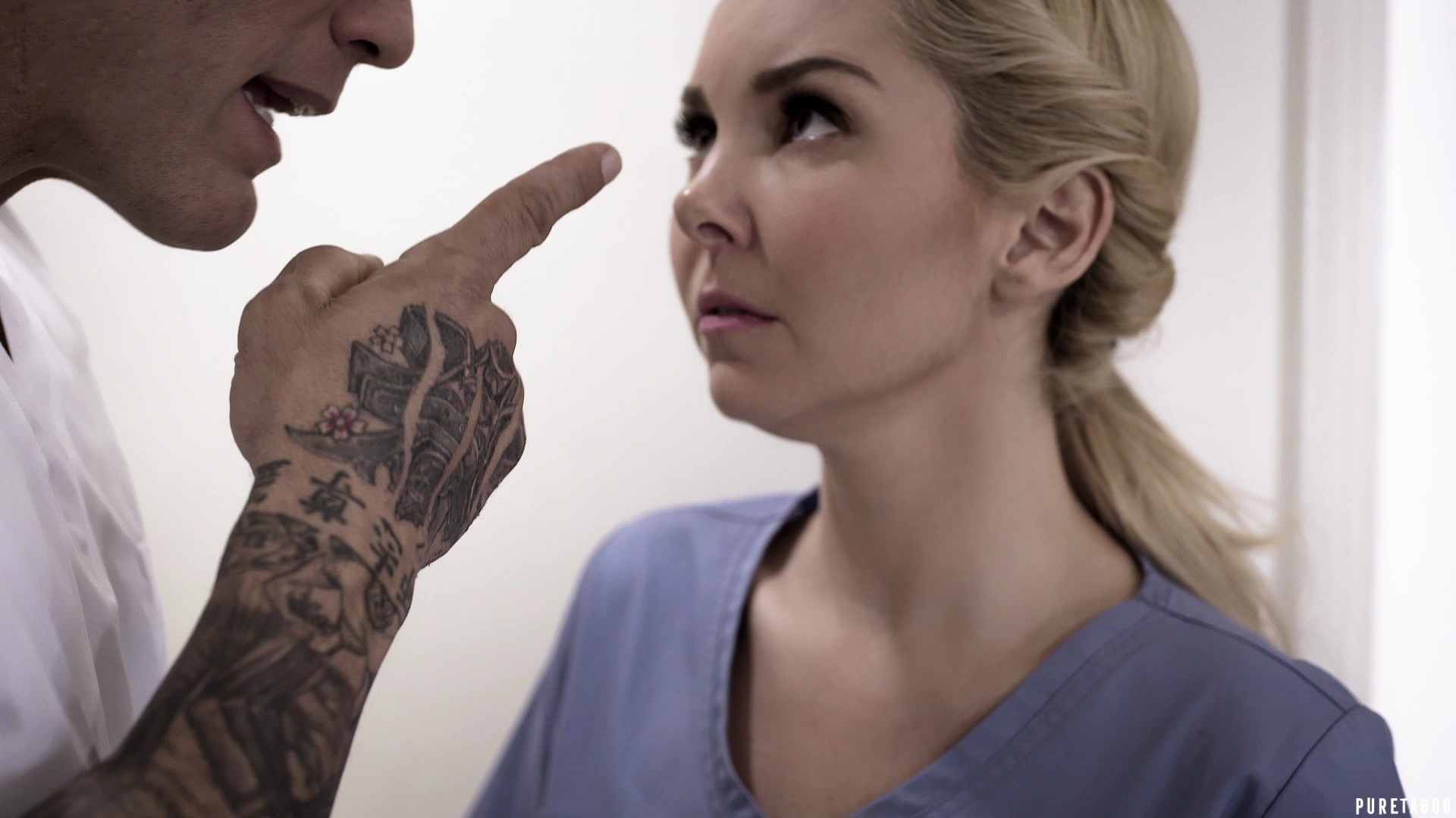 SCENE opens on Tori, a petite 21-year-old woman, as she taps her feet idly in a waiting room. She has an appointment today with her regular massage therapist, Linda, a kind older woman. Tori has been visiting Linda for years to help with lower back pain caused from sports injuries. When Linda warmly greets her, the two women hug and head into the massage room. They small talk for a few minutes before Linda asks her to undress and get on the table. She leaves. Tori takes off all her clothes, folds them neatly, and gets onto the massage table. Cut to Linda in the next room. She looks incredibly anxious. When she hears Tori call out that she's ready, she nervously glances over to a man sitting beside her. It's Richard, her husband. She asks if he is sure that everything is locked and secure, that there is no way they could get caught. Irritated, he snaps at her to quit worrying -- she's always being such a pussy. Besides, she promised. So, if they just do what he says, everything will be fine. Linda swallows hard, a conflicted look on her face, and they get up and exit.CUT TO TITLE PLATETori is lying face down on the massage table when Linda enters the room. She begins the massage and, with a slight quiver in her voice, advises Tori that today she is planning to do something a little different with her technique. She calls it a 'four hand treatment' and asks Tori for her permission to begin. Tori innocently asks what is going to happen and Linda tells her she'll simply be adding something to increase the pressure and to stimulate her muscles, particularly in the lower areas of the body which hold the most tension. Tori happily agrees and Linda, looking guilty, asks her to close her eyes and relax, while quietly summoning Richard into the room.Together, they begin trading off between themselves ... each taking a turn to touch Tori. They do not cross any sexual boundaries, but they begin to work further down Tori's body into increasingly intimate areas of the lower back and upper thighs. Tori is completely unaware that two people are massaging her - she just assumes it's her regular therapist. Throughout it all, Linda keeps talking to Tori to maintain the illusion, while her husband ogles the woman on the sidelines. He begins stroking himself while watching his wife rub Tori and then jumps in to touch her with his hands himself, his penis never actually coming into physical contact with her but looming very close.Linda asks Tori to turn over on her back, so she may massage her front. When the woman does this, Richard ducks out of view. He stands just behind her head, fully erect. Linda becomes increasingly complimentary about Tori's body and starts asking her sexual questions. Tori, thinking she is having girl talk, answers freely. Linda keeps looking knowingly at her husband and he silently pushes her to take the conversation further. Through gritted teeth, she starts to talk about her own sex life with Richard and asking Tori what she thinks of him. Tori innocently confides that she thinks he is cute but that she never looks at married men. Richard strokes harder behind her head. Linda mentions that Richard is going to start taking clients himself and jokes whether she'd like to book a session with him. Feeling somewhat awkward, Tori says maybe in the future but today she is happy to be in familiar hands. Linda puts a hot cloth over her eyes to calm her, while Richard creeps to kneel by her pussy. He smells her and stares at her, as Linda rubs her thighs and the women keep talking. Linda asks to go deeper and deeper, getting increasingly close to Tori's pussy. She can feel hot breath on her labia. She begins to loosen up and enjoy the new technique that her therapist is giving ... even getting to the point where it begins feeling good sexually. She moans, squirms and bite her lip finally removing the cloth to look at what's happening. To her shock, she sees Richard in the room, smelling her pussy, and leaps off the table.While Tori grabs her clothing to cover herself, Linda profusely apologies. Richard steps in front of her, taking control, and begins to reason with Tori. What did she think about their new 'four handed' technique? She agreed to try it, after all? Did she enjoy how it made her feel? What if she just got back on the table and relaxed like before? Tori demands to know what the hell is going on ... is the couple trying to seduce her in some sick way? Is this a swinger scheme? She feels betrayed by Linda, a woman she's knows and trusts. Linda feels terrible and encourages her to just leave but Richard shoots her a dirty look and continues to reason with Tori. He tells her that Linda has been fantasizing about him fucking with her clients for years ...that the whole thing was her idea because she is frigid and cannot satisfy him any longer. As he lies, Linda looks increasingly defeated. When Tori asks her if it's true, she says yes and stands behind her husband.There are several rounds of back/forth negotiation before Tori finally agrees to let the couple finish what they started. But, as soon as she has accepted, Richard tells Linda to leave the room so he can have his fun ALONE. This is another shock to Tori, who thought her familiar therapist would at least be involved. There is a second round of negotiation before Tori agrees to let Richard fuck her. She is so angry at Linda that she ultimately consents as a means of punishing the therapist who betrayed her.After he has cum on her face, Richard exits ... leaving the overwhelmed Tori on the table. In a final long shot, we watch her dress and leave silently, walking past Linda who is left to clean up the table.