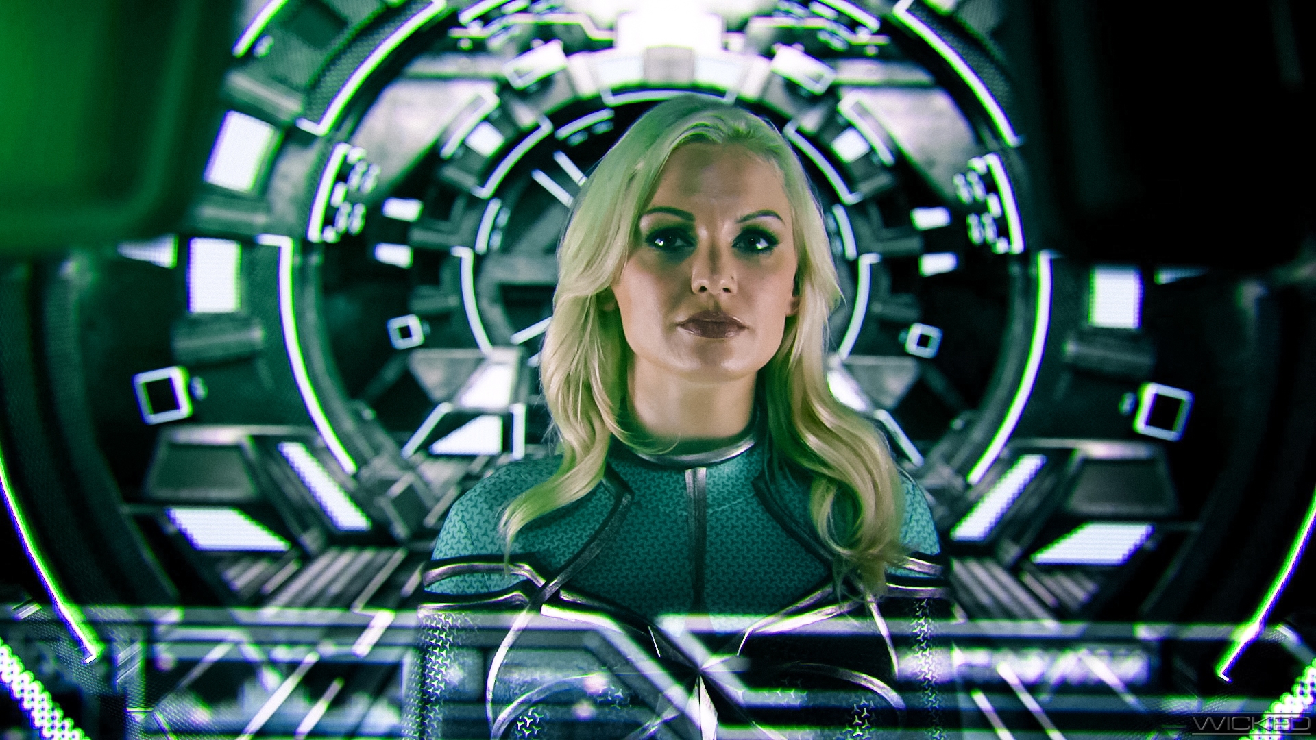 When Captain Marvel (Kenzie Taylor) gets caught by two Skrulls (Alex Legend, and Ramon Nomar) she does it what it takes to work the shape shifting aliens into submission.