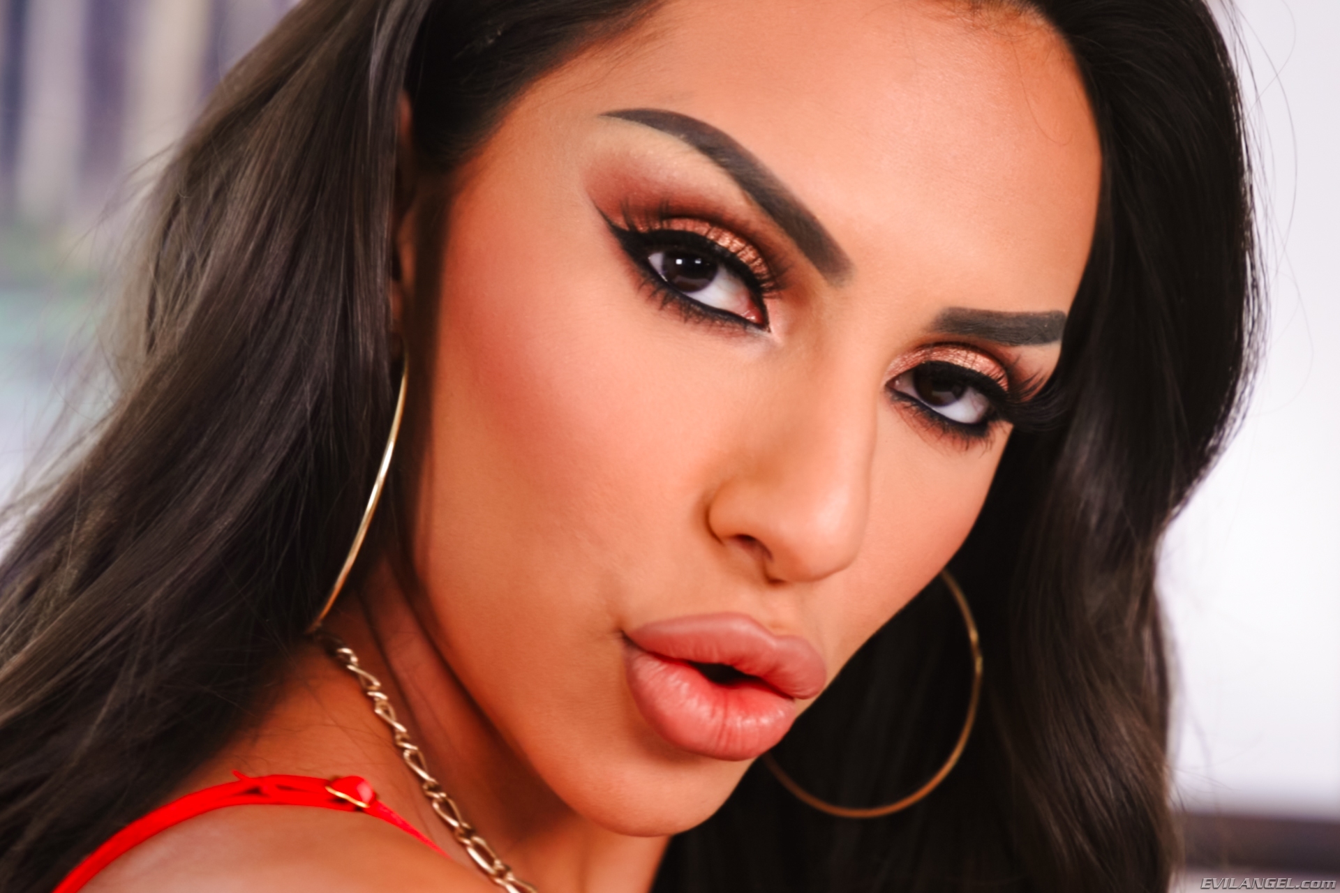 Slender, caramel-skinned cutie Hime Marie models red lingerie with matching high heels, shaking her booty bedside in a heated intro. The sassy sex freak puckers her lush lips and blows a kiss to the camera, teasing and stripping to preface a nasty, one-on-one oral session. Director Jonni Darkko's intimate POV shot shows Hime kneeling before his boner, ready to suck dick. She looks into the lens eagerly and asks, 'You like these big, sexy lips?' With that, she opens wide for Jonni's rod. He grunts as she deepthroats his meat, offering encouragement through a slobbering blowjob. The deviant doll blows spit bubbles and laps Jonni's ball sack, talking dirty whenever his stiff prick pulls out of her pie hole. A mess of raunchy throat fucking climaxes with a hot cum facial. A glob of sperm rests above Hime's nose; she uses her finger to scoop it up and taste it!