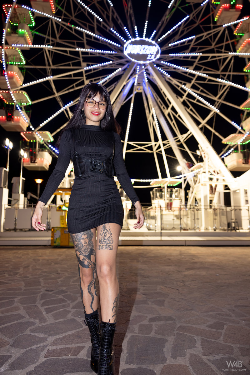 Lilith is on her way through Europe again, enjoying life, loving fun, discovering interesting places and nice people. Of course, especially men, who of course pay her attention everywhere. And so when she saw an evening amusement park on the seashore, she couldn't miss it. Come with us to enjoy her happy moments when she has fun, flirts and looks incredibly sexy. Lots of photos and if you wait a moment, we have an exciting movie for you.