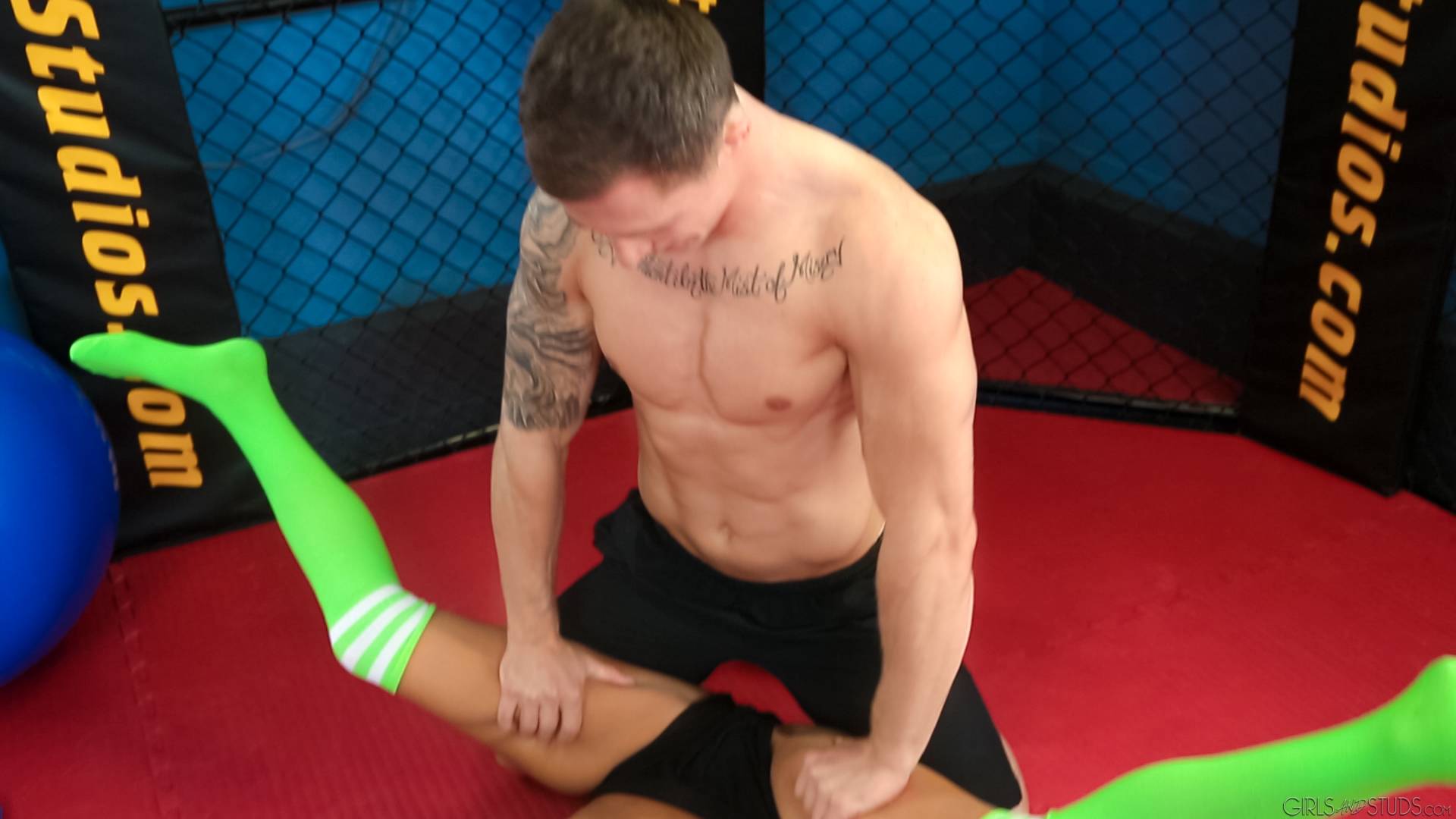 Miss Lolly Ink is not a newbie to the gym scene, but she's scheduled an appointment with a particular trainer by the name of Markie More. Lolly's been watching the chiseled, confident Markie for a while and wants to get a little personal attention.Lolly wears a very sexy outfit to catch Markie's eye. She definitely catches more than that! Lolly takes the first opportunity to lay a passionate smooch on Markie. Markie likes this new direction for the training session. He grabs Lolly and squeezes her, grinding his hard dick into her body. They wind up on the floor, dry humping and making out. Then Markie stands up and gives Lolly a nice little show involving some seriously sexy cock stroking. Lolly can't believe how hard Markie's fat dick is becoming. Salivating, she gets up and devours the throbbing dong. She sucks as Markie plays with his ass. After slobbering deep and hard, Markie slides his pulsating erection into the girl. Watch him pound his cock-loving new client right on the workout mats. This one will have you so worked up, it should count as your exercise for the day!Enjoy!