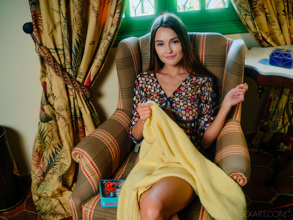 Stunning brunette Sonya Blaze puts aside her needlework, ready to give her nimble fingers something even more pleasurable to do.