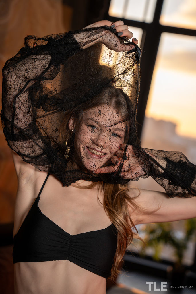 A natural beauty wearing minimal makeup, she is wrapped in a tight, silver-sequin miniskirt and black lace – and, as she kicks off her spike-heeled boots and peels away the layers, she’s the gift that keeps on giving.
