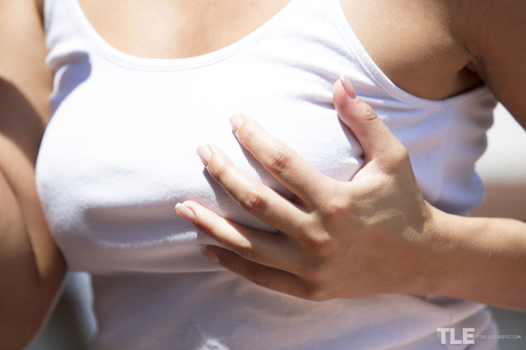 Cute Hungarian honey Vicky Love is in her garden, treating a brick wall with oil – but this playful brunette isn’t hard at work for long. As she enjoys the sunshine dressed in tight red shorts, a white spaghetti-strap tank and flats that leave her pretty feet exposed, she gets a little careless.
