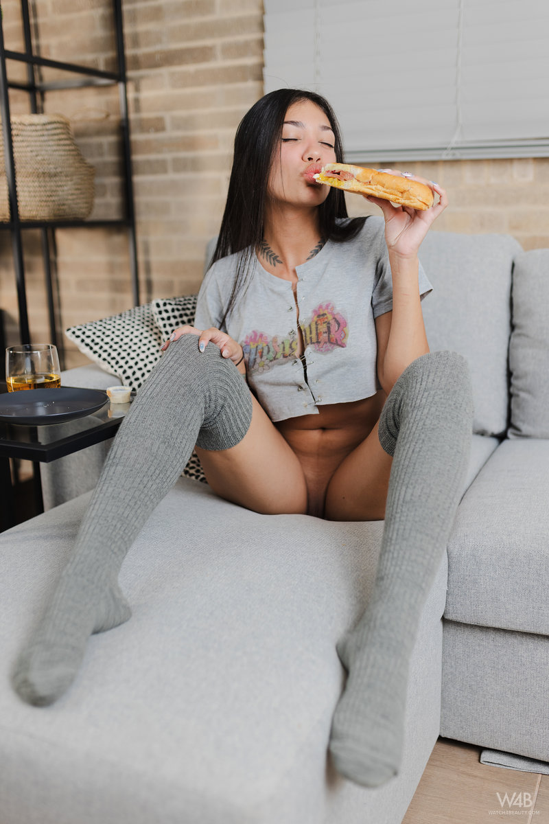Our beautiful and popular Yeye is playing on the sofa with her big dildo. She’s all matched up in grey. Her shows are always a great, exciting and unusual experience. She loves big toys and does squeaky tricks with them. So take a look and enjoy.